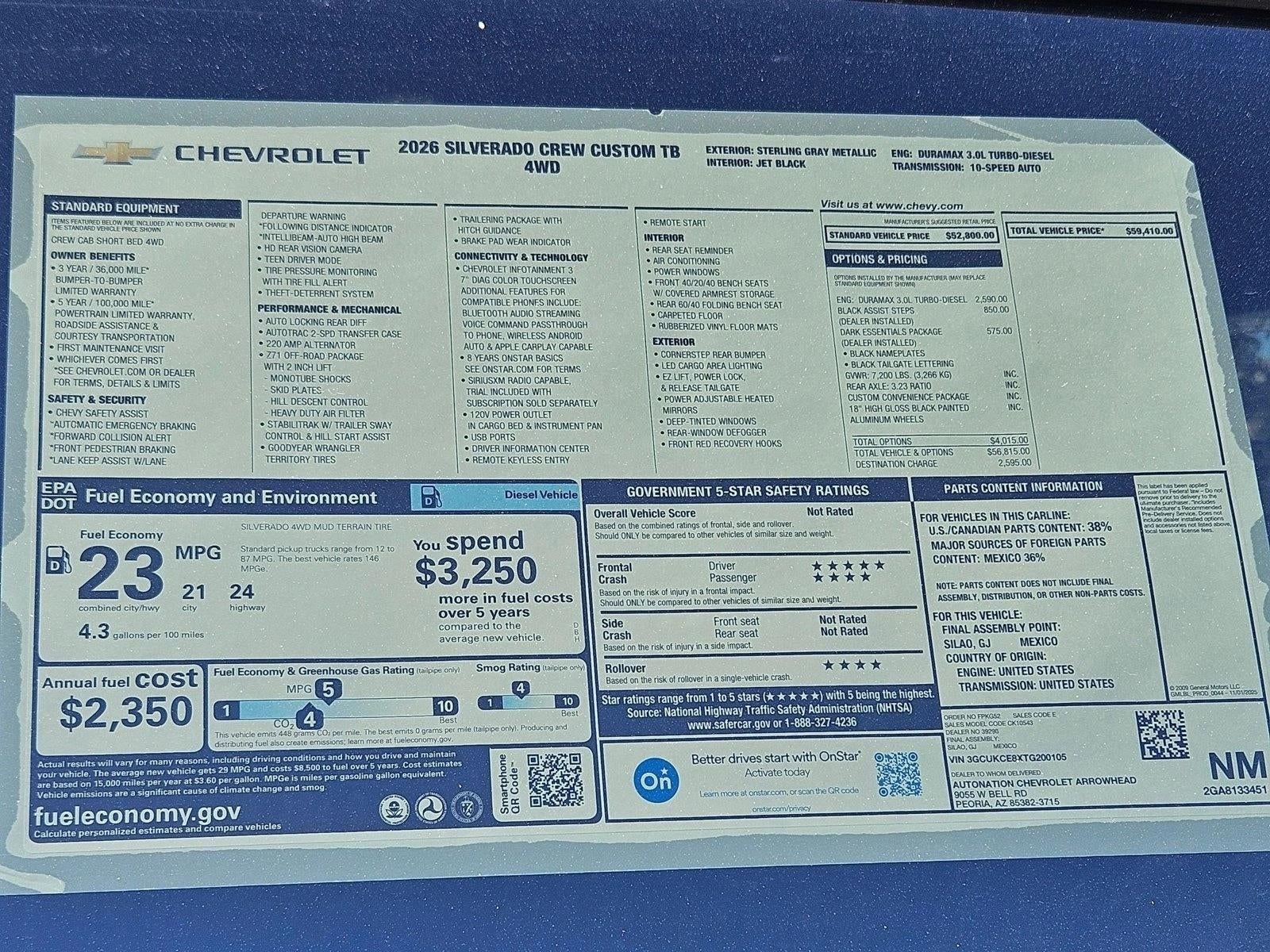 - Custom Trail Boss Preferred Equipment Group includes standard equipment